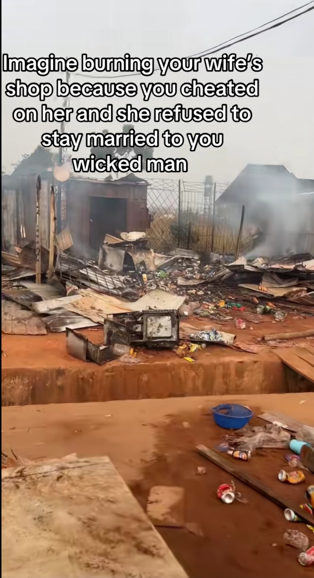 TikTok user Lucky, who shared the video, also expressed her disappointment, saying, “Imagine burning your wife’s shop because you cheated on her and she refused to stay married to you. Wicked man. Imagine waking up to see your shop burnt down, including your neighbor’s shop, by your own husband.”